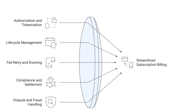 All of this is done in a way that complies with global stored credential rules and minimizes dispute risk.